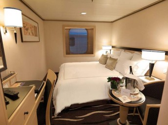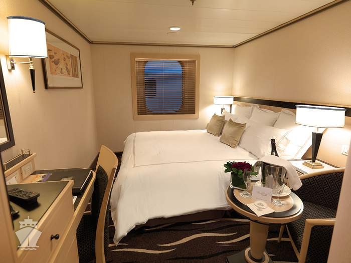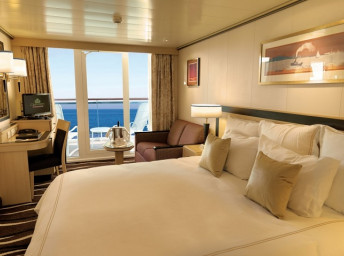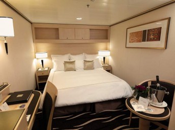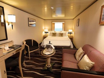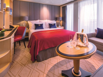 Velkoryse prostorná kajuta je vybavena stolem, posezením a velkou postelí a navíc prostorným balkonem se stolem a židlemi, kde můžete relaxovat na mořském vzduchu.