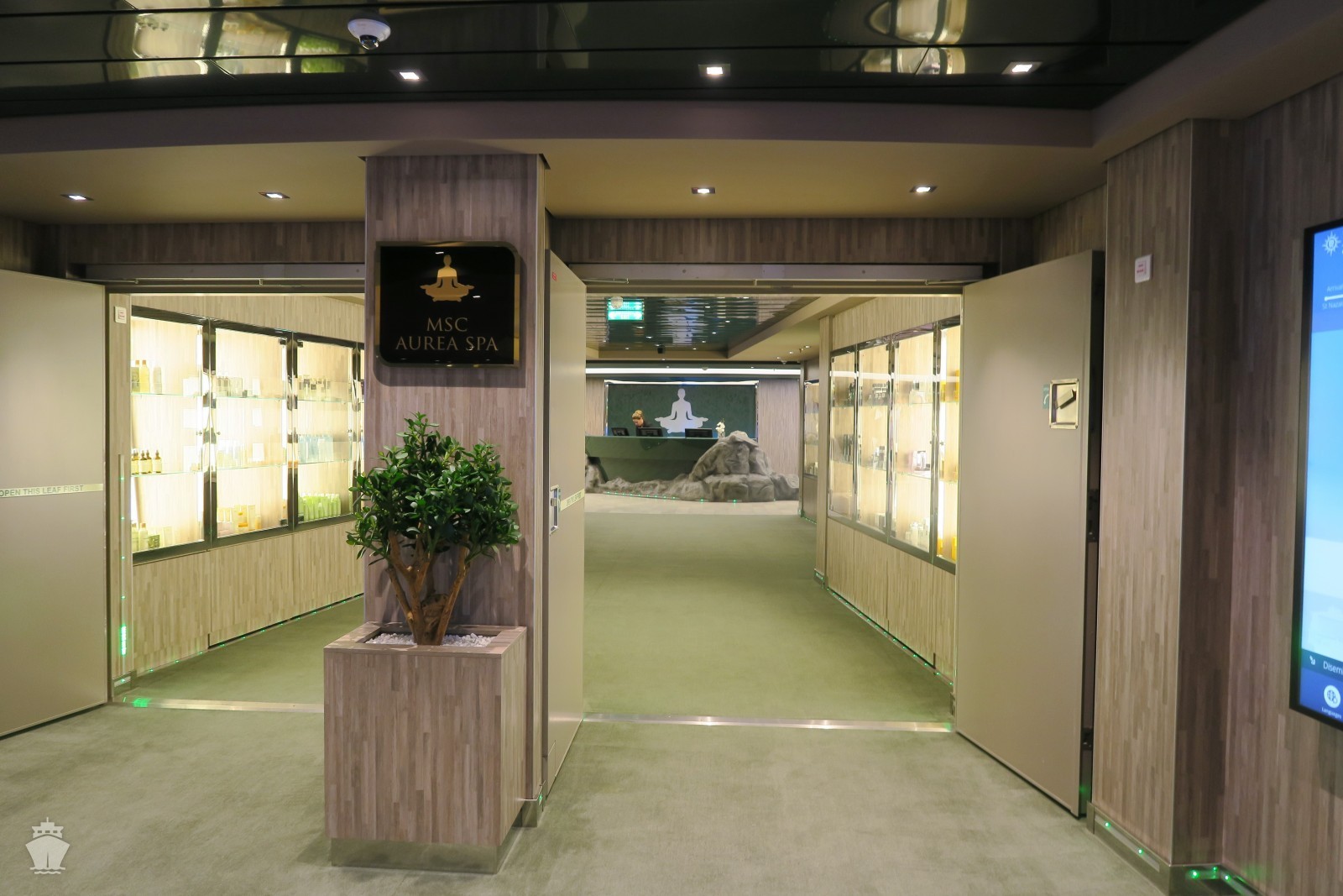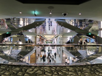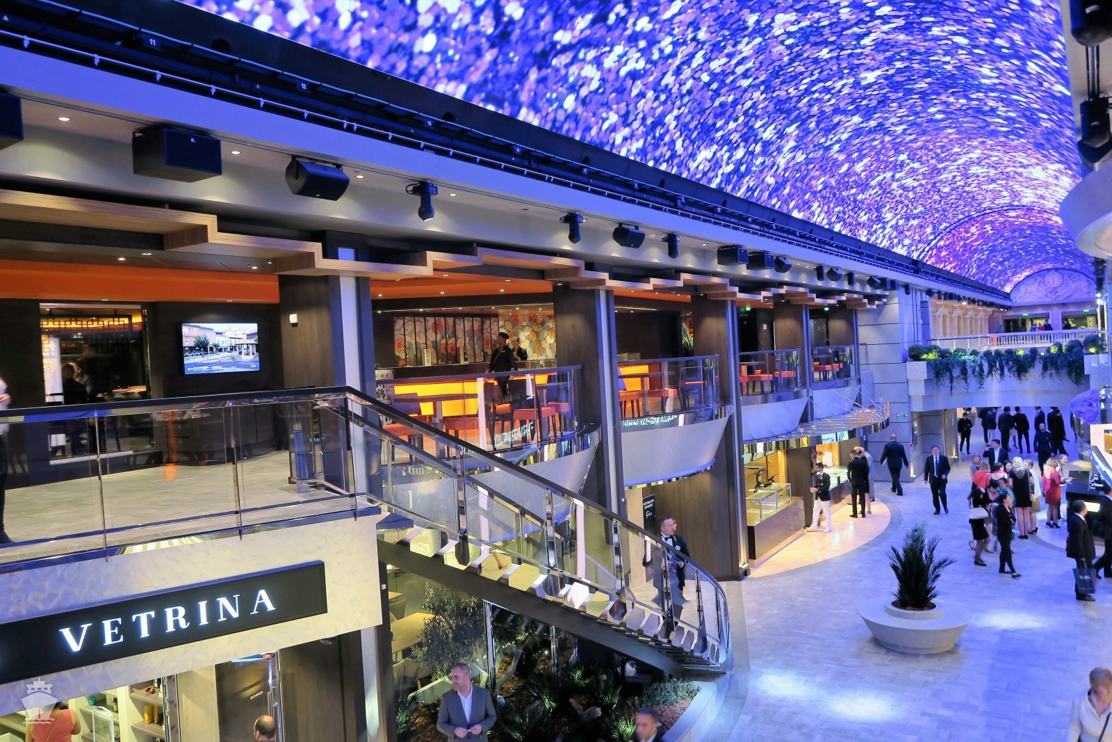 - centrální promenádní galerie s obchody a butiky, zaklenutá obří LED obrazovkou