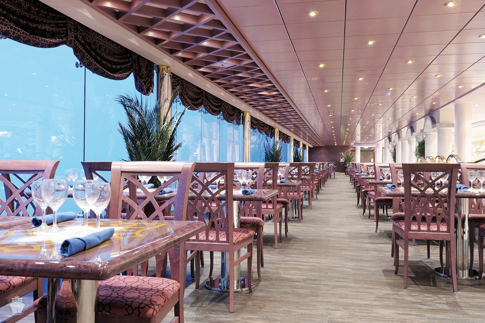Bohatá plná penze je v základní ceně plavby a podává se v samoobslužné restauraci nebo v restauraci s obsluhou. Skládá se ze snídaně, oběda, odpolední svačiny a večeře. K dispozici je i vegetariánské menu a bezlepkové menu na vyžádání. Nápojový automat (voda, káva, čaj) v samoobslužné restauraci je otevřený 20 hodin denně.