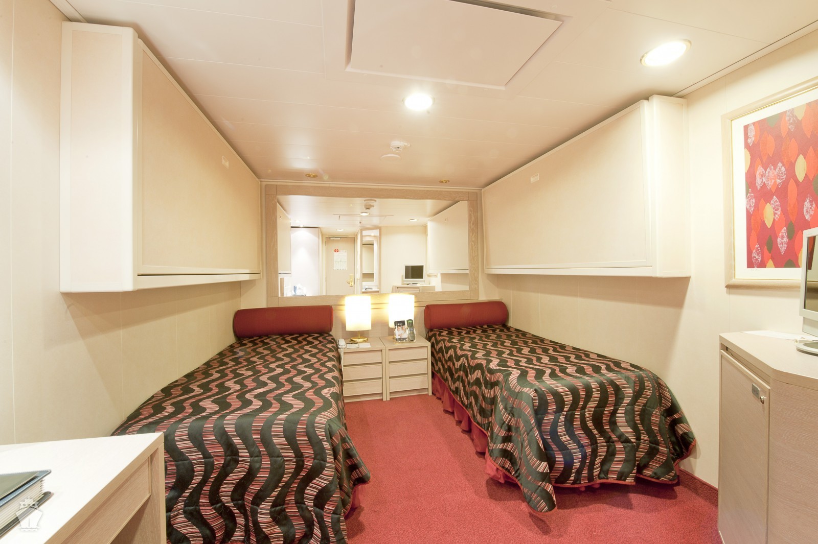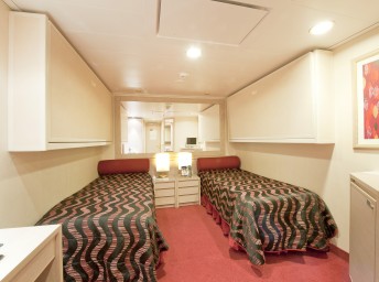 Kajuta vnitřní:  13 m², kajuta s manželskou postelí (na požádání 2 oddělené postele) a 1-2 vyklápěcí horní lůžka. Klimatizace, koupelna se sprchou a WC, toaletní stolek, skříň, interaktivní TV, minibar, sejf, telefon, vysoušeč vlasů.