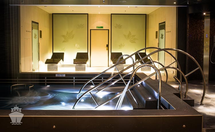 Standardní vybavení kajut: koupelna se sprchou a toaletou, 2 lůžka s možností konfigurace, úložné prostory, minibar, fén, TV, trezor. Balkony je vybaven malým stolkem a 2 židlemi či lehátky.