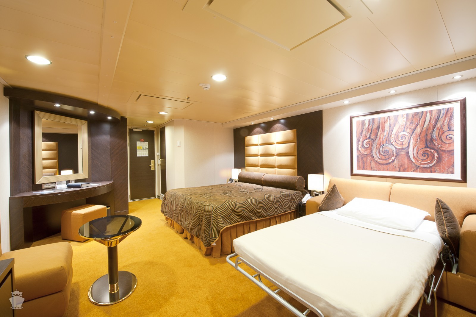 Kajuta vnitřní: 13 - 24 m², kajuta s manželskou postelí (na požádání 2 oddělené postele) a 1-2 vyklápěcí horní lůžka. Klimatizace, koupelna se sprchou a WC, toaletní stolek, skříň, interaktivní TV, sejf, telefon, vysoušeč vlasů.