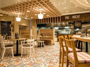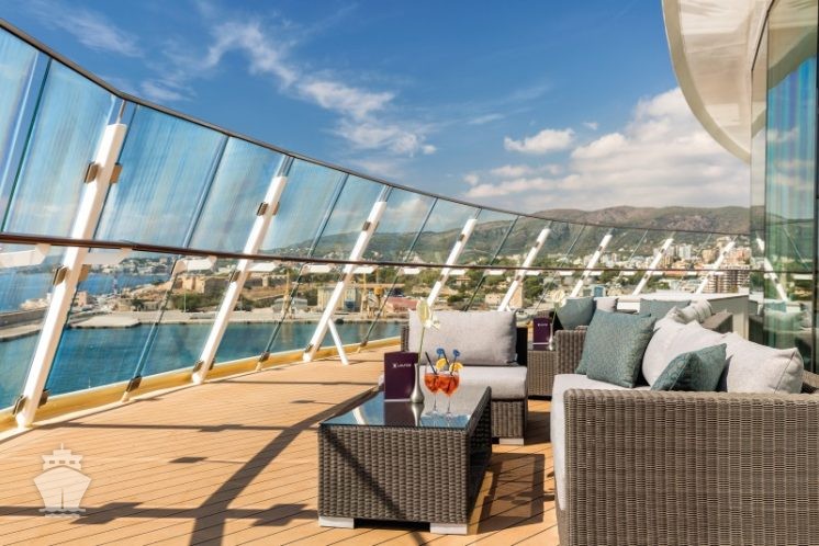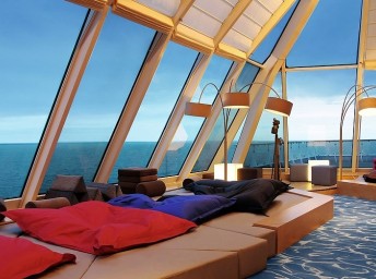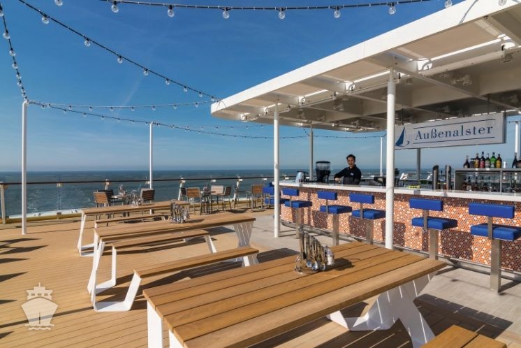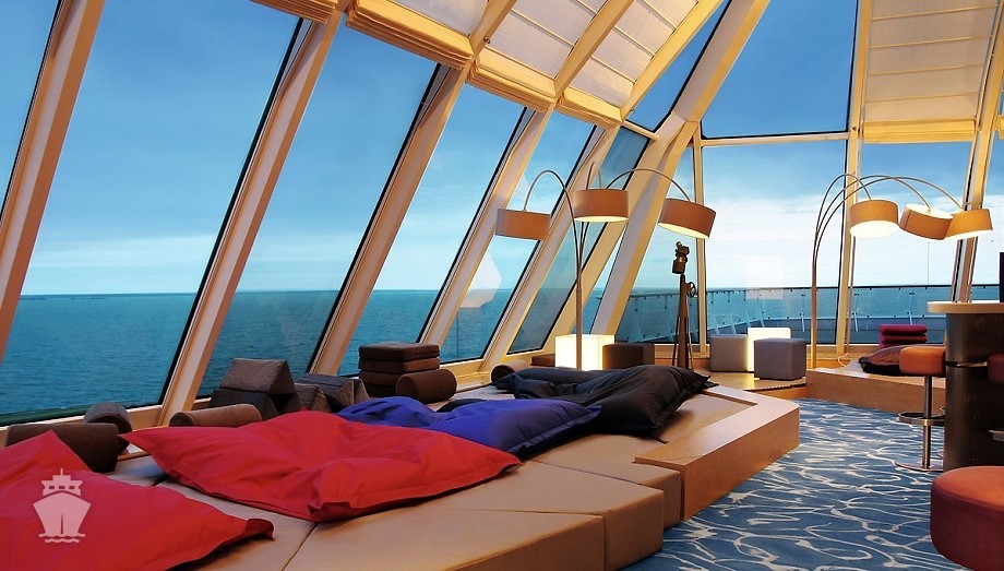 • Modrý balkon "The Blauer Balkong" na 14. palubě - vyhlídková 11 m2 plošina ze skla ve výšce 37 m vám dá pocit, že se vznášíte nad mořem.