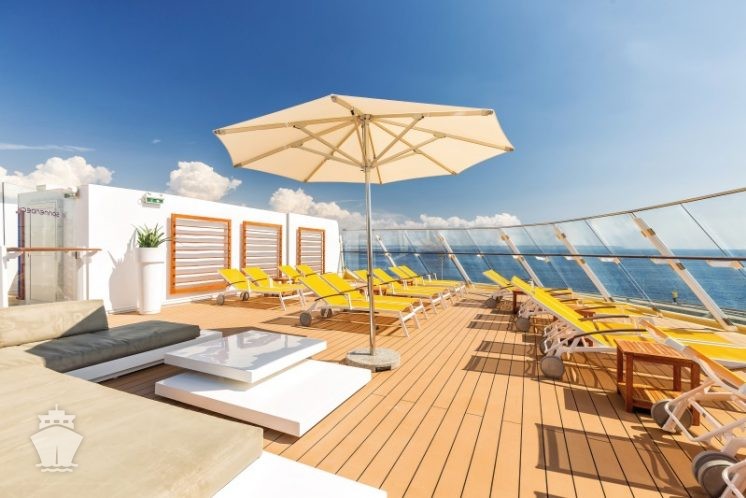 • Velká obrazovka na promítání filmů na vnější palubě Sportovní paluba na volejbal, fotbal a basketbal Výborné Spa & Meer, plně vybavené fitness centrum K dispozici jsou i sportovní a elektrická kola.