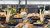 WINDJAMMER - hlavní restaurace na lodi se švédskými stoly. Windjammer je oblíbenou restaurací, kde si můžete vychutnat dráždivé světové chutě, jako právě vylisované panini plné oblíbených mas a sýrů. Čerstvé vločkové pečivo z trouby, omelety nebo vydatné pokrmy, které pokrývají celou škálu od křupavého smaženého kuřete na podmáslí po vietnamské dušené Ho Či Minovo vepřové maso.