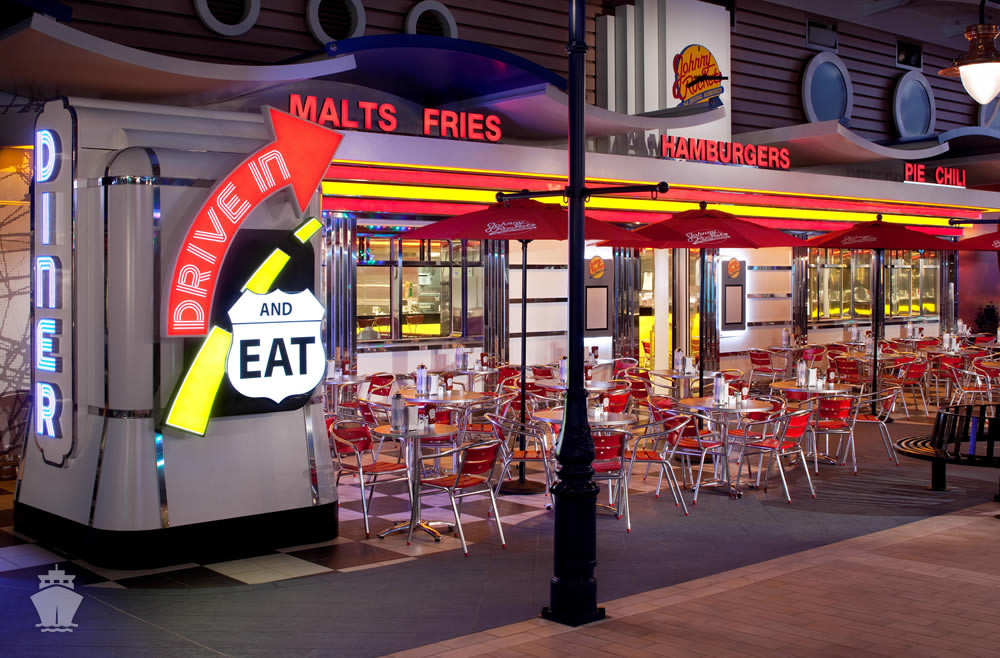 MINI -BITES - obsahuje rychlé neformální občerstvení a nachází se na zádi poblíž sportovní zóny a bazénu. Lze se občerstvit v podobě delikátních snacků, grilovaného sýra, pizzy, taquitos, mini cupcaků a dalších specialit.