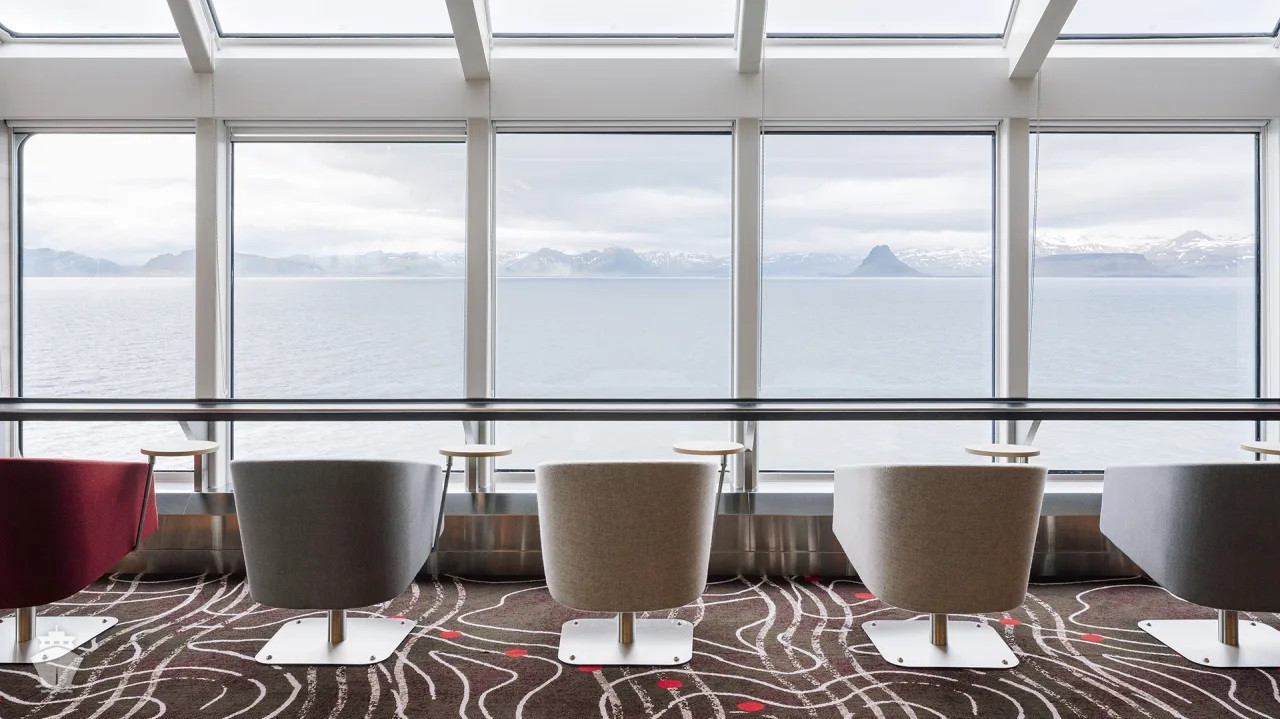 Na interiéry lodi byly použity převážně přírodní materiály jako kámen, dřevo a vlna. V kombinaci se severským dizajnem tak vnikly úžasné prostory, které pozitivně působí na každého cestujícího.