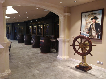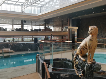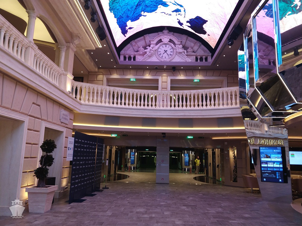 - promenáda s restauracemi, bary a duty-free obchody, zastřešená 480 m² LED "digitální oblohou" s vizuálními show