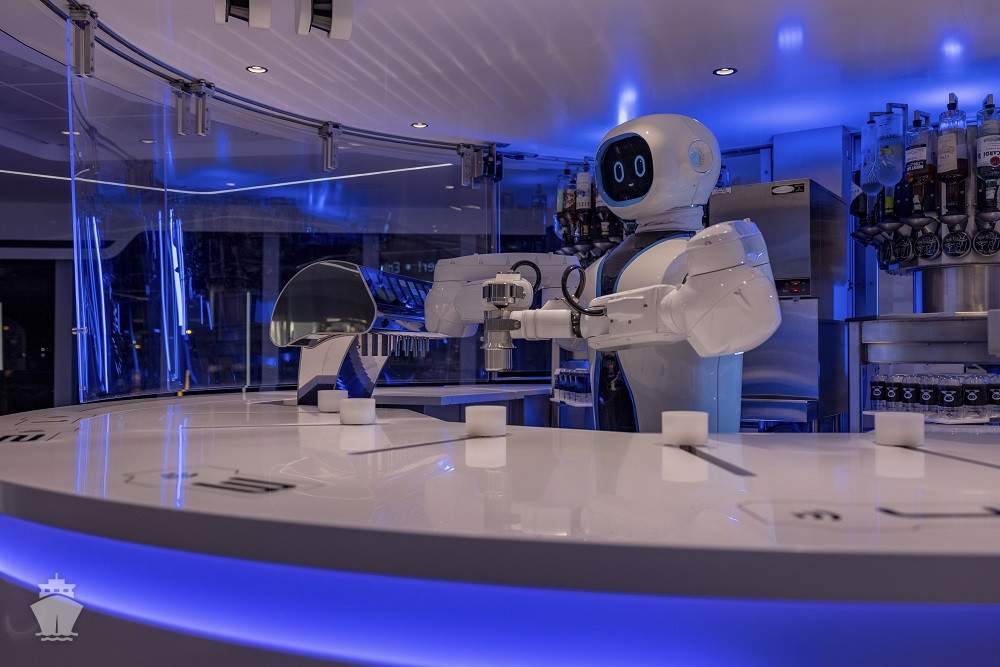 - unikátní bar s robotickou obsluhou a s digitální uměleckou stěnou a 3D hologramy