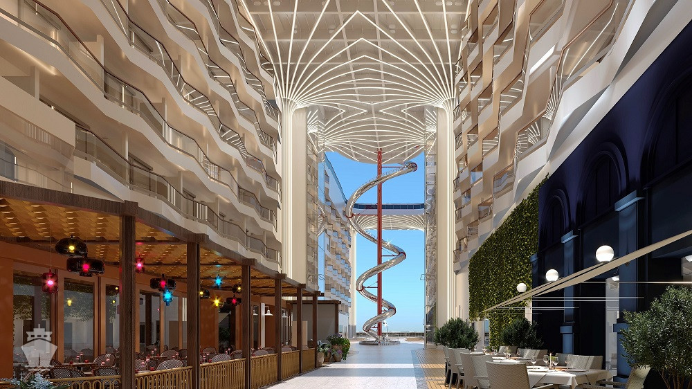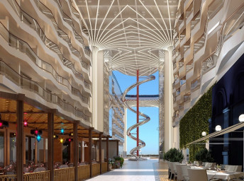Jedním z klíčových prvků lodní promenády je The Spiral - architektonicky pozoruhodný tobogán, který se stáčí přes neuvěřitelných 11 palub - nejdelší suchý tobogán na moři! Elegantní křivky působivého skluzu z nerezavějící oceli z něj dělají skutečné umělecké dílo a je to i zábavný způsob, jak se rychle dostat z vrcholu lodi na promenádu.