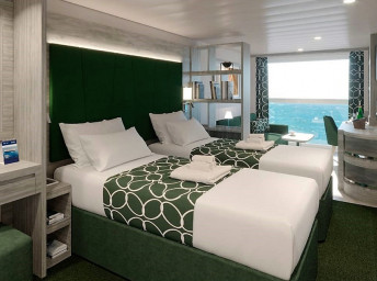 Kajuty Infinite - VL1, VL2 - kajuty s panoramatickým oknem, některé jsou se zasouvacím oknem, které se po otevření změní na skleněnou balustrádu.