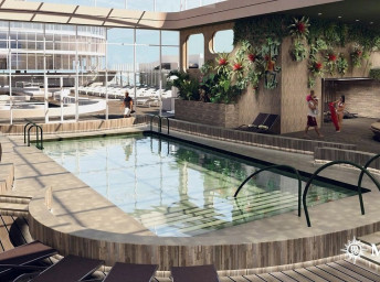 Na lodi se nachází 6 bazénů a 14 vířivek pro veřejnost, otevřená paluba vyhrazená pro rodiny s dětmi, jak i vodní Aquapark, kde se skutečnost mísí s virtuální realitou.