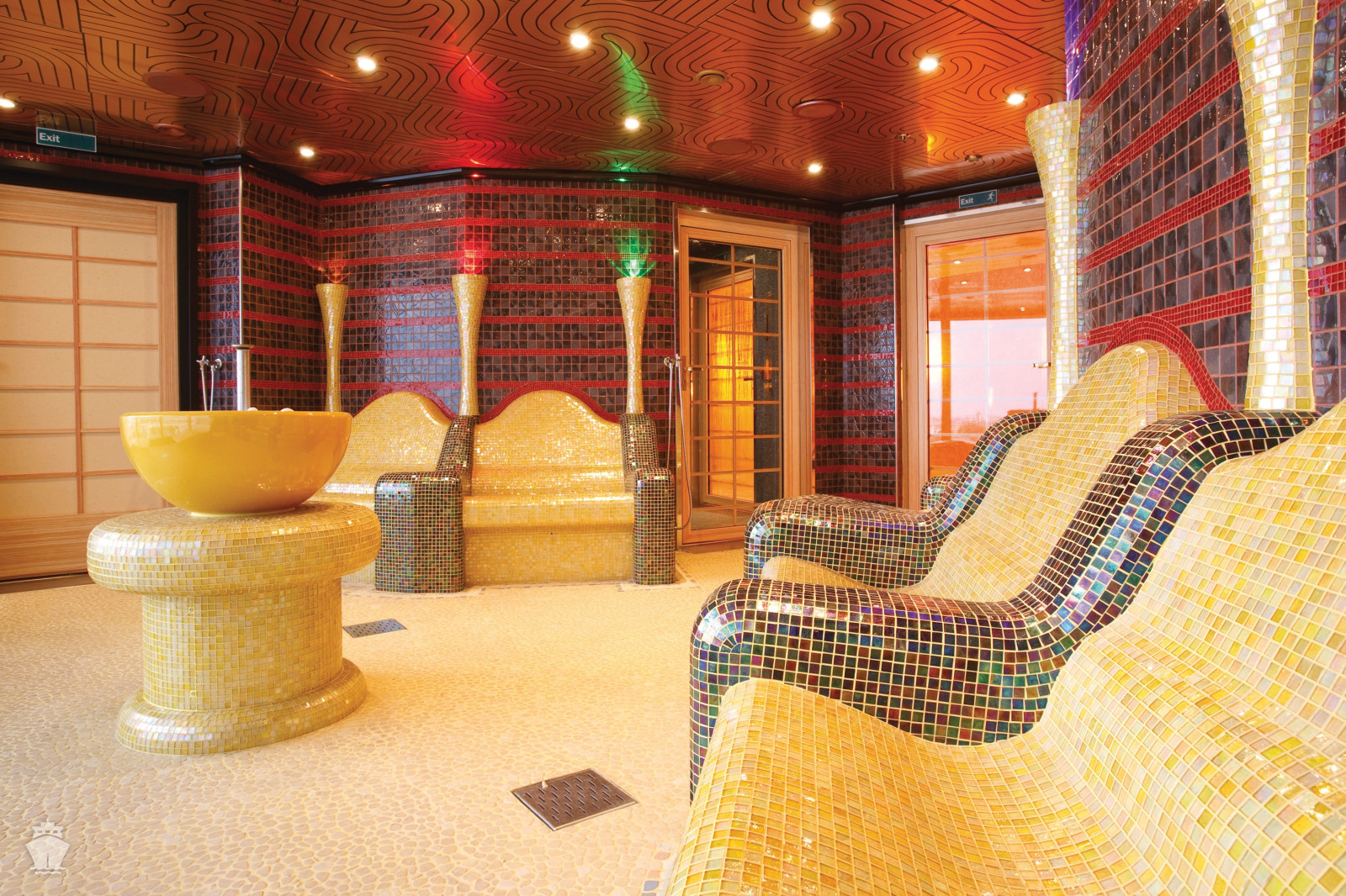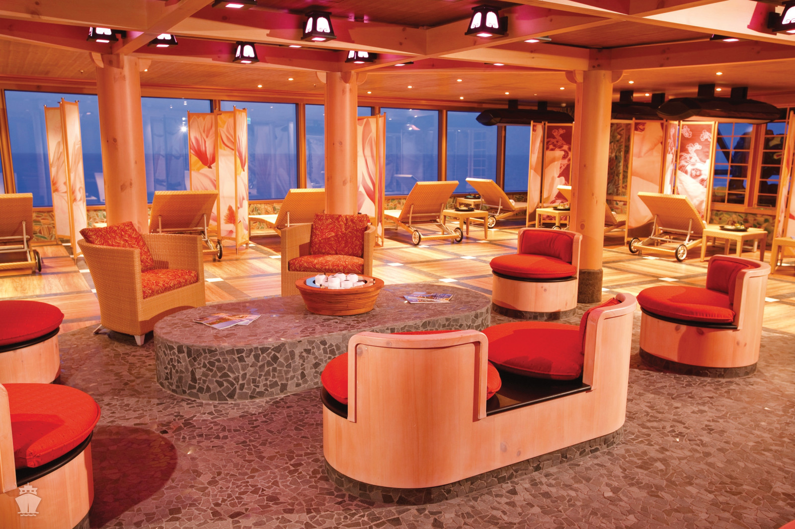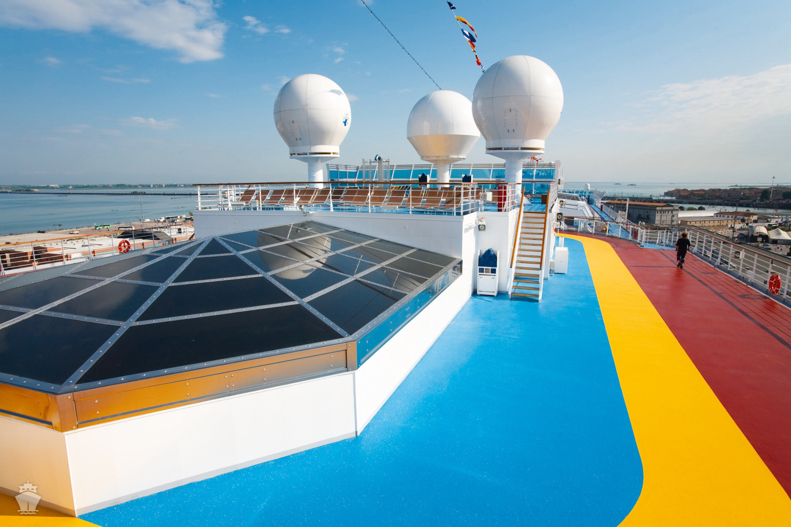 - bazény na horní palubě (jeden s posuvnou střechou)