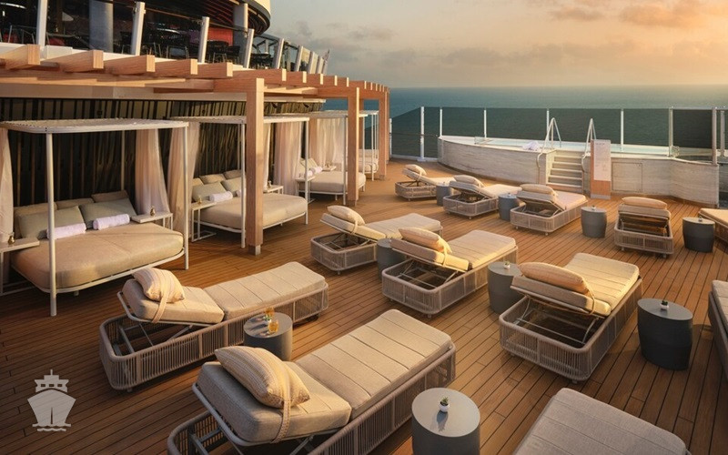 - Thermal Suite - wellness zóna s parní a solnou místností, ledovou komorou, saunami a prvním hliněným spa na moři – vše pod dvoupatrovým vodopádem.