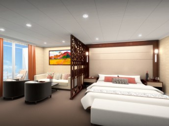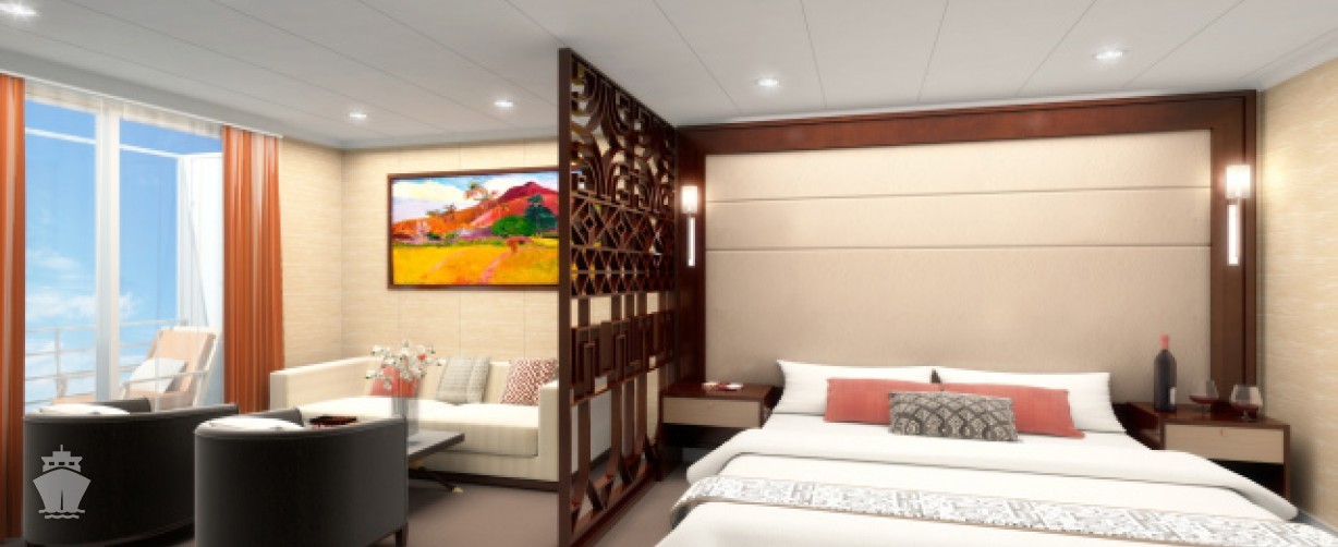 Loď je navržena podle principů feng-šuej (majiteli lodní společnosti jsou i dnes čínští Tahiťané). Má 108 útulných a vkusných kajut. Od prezidentského apartmánu až po kajuty sdílené osmi osobami umožňuje ubytování hostům s opravdu různým finančním rozpočtem. Můžete si vybrat z osmi kategorií ubytování: Class C (4-lůžkové vnitřní nebo až 8-lůžkové s oblou), vnější kajuty Stateroom (2- až 4-lůžkové s okénkem), Deluxe (pro 2 osoby s balkonem), Superior Deluxe (větší verze Deluxe), až po apartmány: Junior, Premium, Royal aa Presidential.