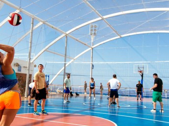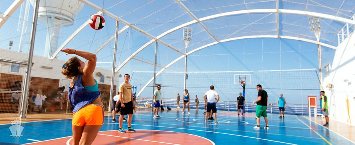 • využívání fitness centra, sauny, běžecké dráhy, bazénů, vířivek, tobogánů a vodního parku (na vybraných lodích), minigolf, basketbal, volejbal, stolní tenis, knihovna