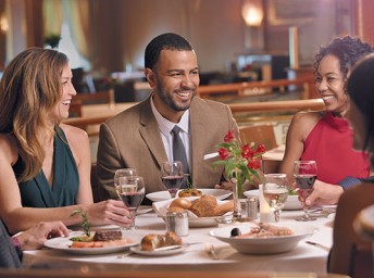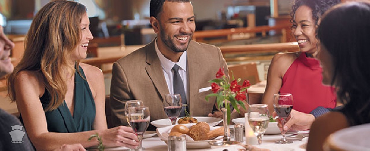 Anytime Dining: Podobně jako v restaurace na pevnině, večeřte s kýmkoliv dle vašeho přání, kdykoli v době od 17:00 do 22:00.