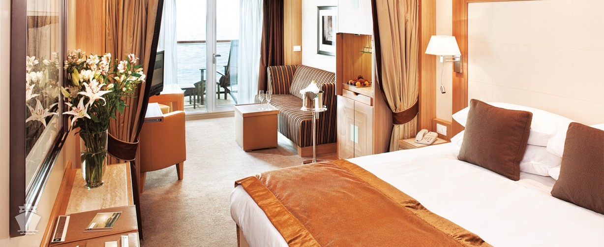 Všechny apartmány jsou vnější kajuty, luxusně zařízené, s politikou otevřeného baru, kde se podávají prémiové vína, šampaňské a lihoviny.