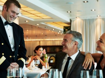 Každá loď nabízí výběr stravovacích zařízení, ze kterých si může host vybrat podle své momentální nálady. Téměř všechny mají otevřeno sezení. Všechna jídla jsou bez příplatku a k obědu a večeři se bezplatně nalévají kvalitní vína.