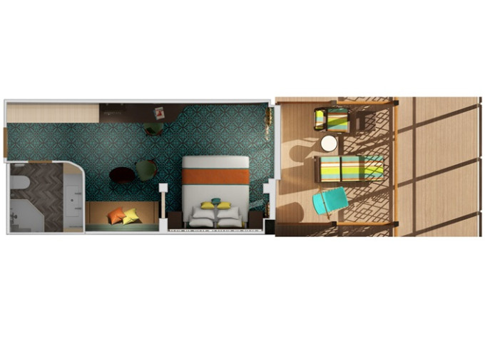 | HE - Kajuta Havana Cabana s patiom 19 m² / vnější patio 8 m². Tropický styl, vstup do exkluzivní zóny Havana. | 73 634 Kč 36 817 Kč za osobu |