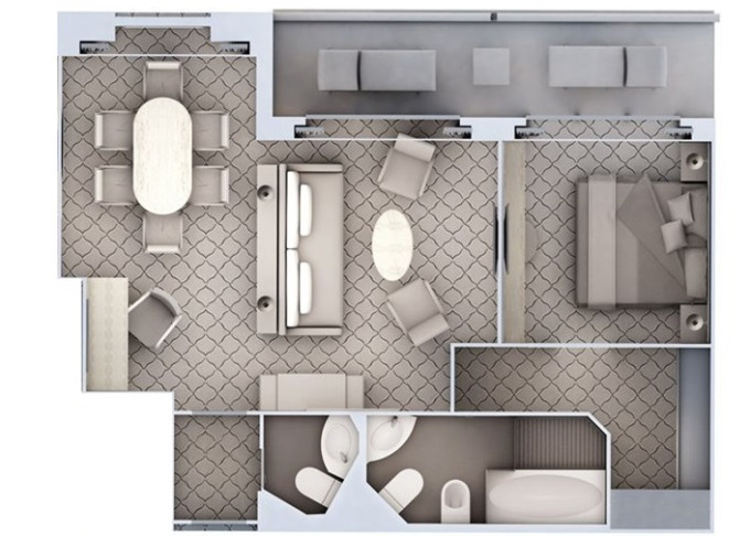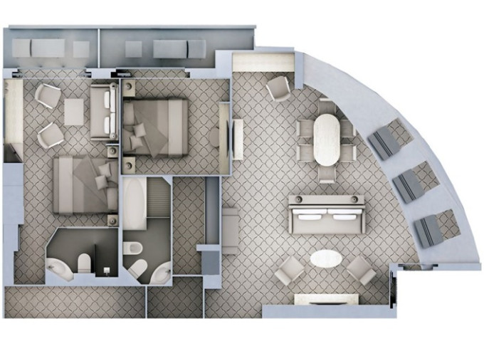 | R1 - Royal Suite 1 69 m² (včetně balkona), oddělená obývací časť a ložnice | 2 292 935 Kč 764 312 Kč za osobu |