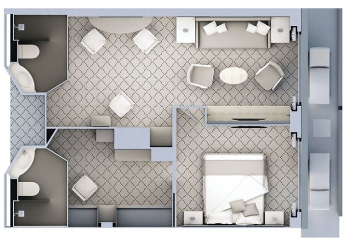 | ME - Medallion Suite 40,6 m² (včetně balkona), oddělená obývací časť a ložnice | 1 218 902 Kč 609 451 Kč za osobu |