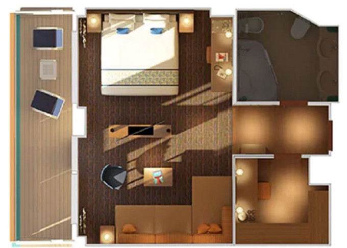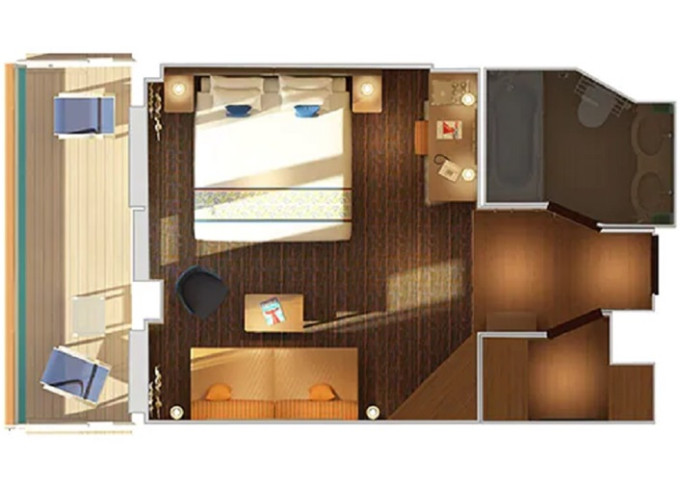 | HI - Kajuta Havana s väčším balkonem Aft Extended 17 m² / balkon 7 m². Vzadu. Tropický styl, vstup do exkluzivní zóny Havana. | 57 548 Kč 28 774 Kč za osobu | ||