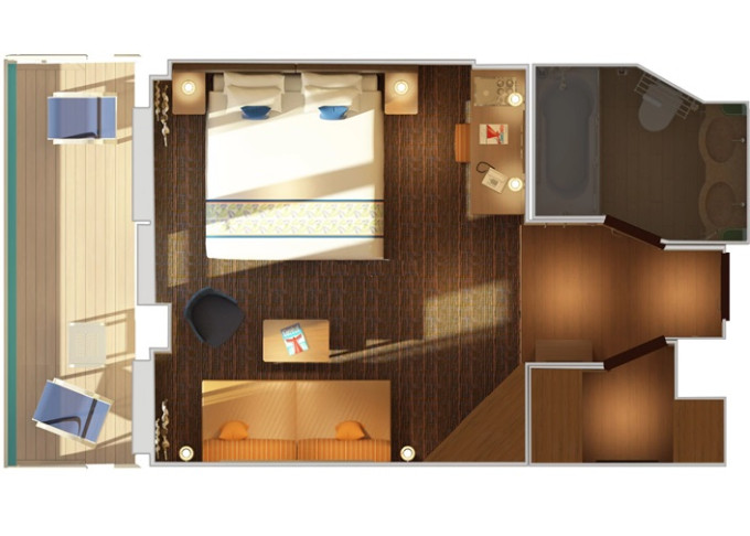 | TM - Kajuta s balkónem Premium Vista Terrazza 38 - 44 m². Služby Terrazza. Pouze pro osoby starší 12 let. | 55 350 Kč 27 675 Kč za osobu |