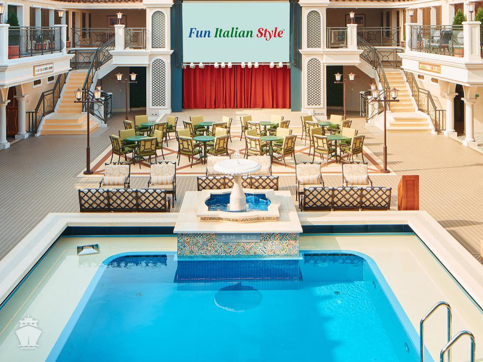 - plná penze v hlavních restauracích Main Dining Room, v 24/7 bufetových restauracích Lido a v 24/7 pizzerii