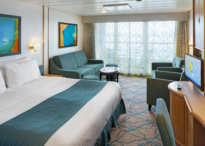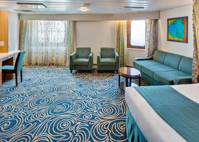 | VO - Ocean View Suite (bez balkonu) / 2 ložnice 44,5 m². Panoramatické neotevíratelné okna. Výhody Royal Suite Class. 8. paluba. Max 8 osob. | 90 269 Kč 90 269 Kč za osobu |