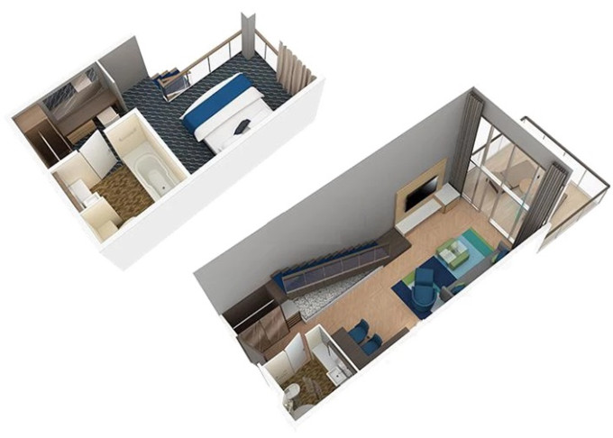 | L1 - Crown Loft Suite s balkonem 50 m² / balkon 10 m². 2-podlažní apartmán. Výhody Royal Suite Class. 17. paluba. Max 4 osoby. | 268 908 Kč 268 908 Kč za osobu |