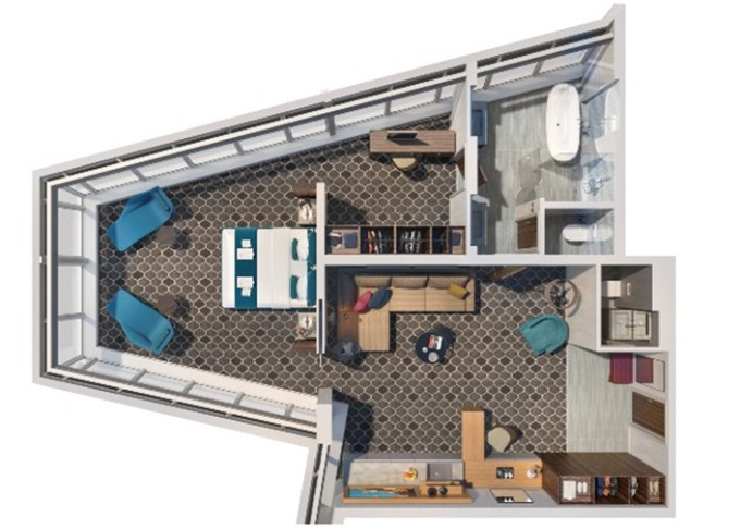 | TL - Star Loft Suite 67 m² / balkon 38 m². 2-podlažní apartmán. Výhody Royal Suite Class. 17. paluba. Max 4 osoby. | 566 640 Kč 566 640 Kč za osobu | ||