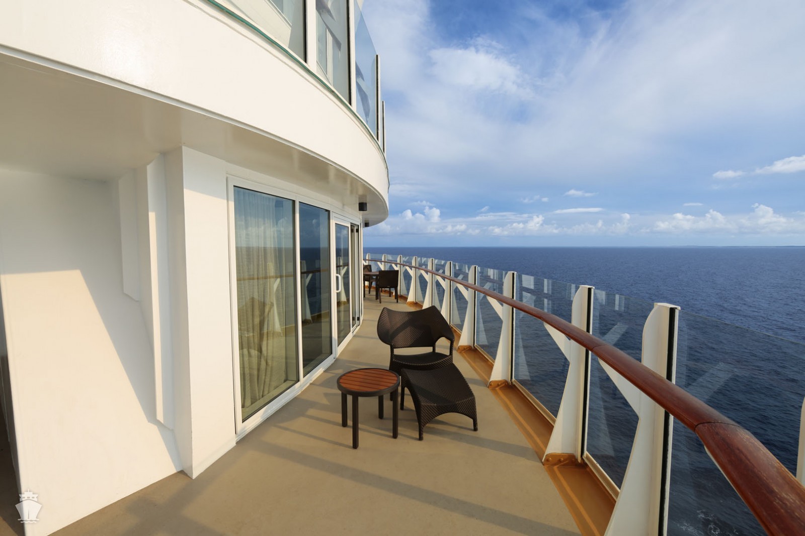- Kajuty s balkónem jsou oázou soukromí s výhledy na moře.