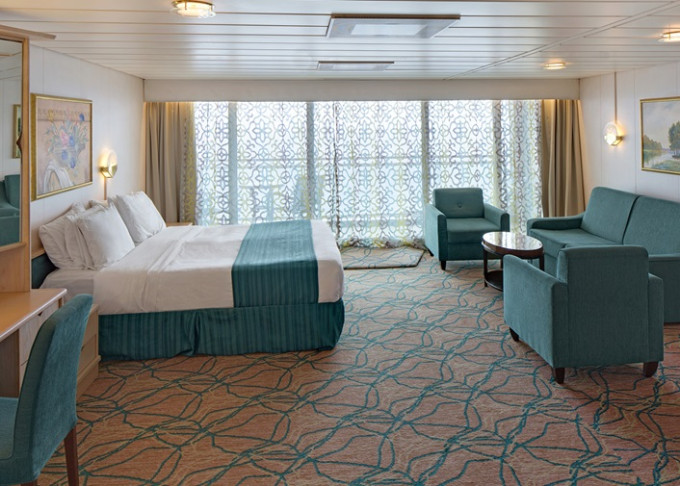 | VO - Ocean View Suite (bez balkonu) / 2 ložnice 49 m². Panoramatické neotevíratelné okna. 8. paluba. Max 8 osob. | 114 547 Kč 114 547 Kč za osobu | ||