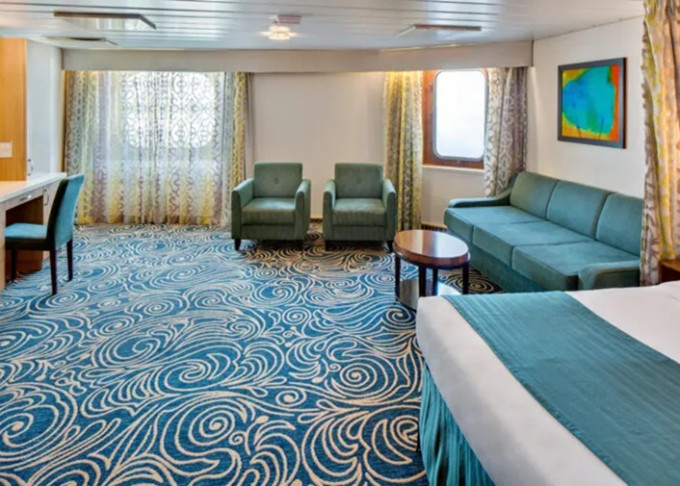 | VO - Ocean View Suite (bez balkonu) / 2 ložnice 49 m². Panoramatické neotevíratelné okna. 8. paluba. Max 8 osob. | 146 068 Kč 36 517 Kč za osobu | ||
