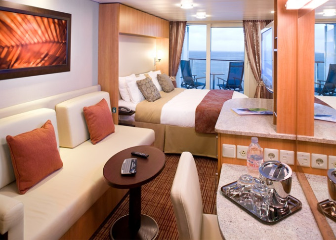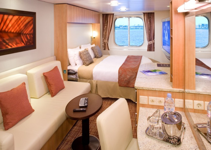 Základní vybavení všech kajut: koupelna s WC, fén, toaletní potřeby; lůžka, dostatek úložných prostor, toaletka se zrcadlem, individuálně nastavitelná klimatizace, TV, župany, trezor, minibar.