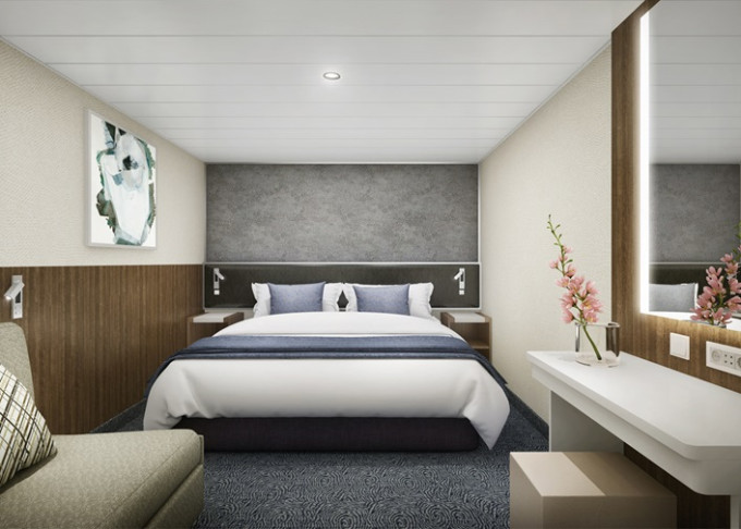| O3 - Vnější kajuta Deluxe 26 m². Velké neotevíratelné okno. 8. paluba - vpředu. Max 3 osoby. | 95 114 Kč 47 557 Kč za osobu |