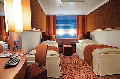 Ve všech kajutách se nachází koupelna se sprchou, manželská postel s možnosti oddělit lůžka, dostatek úložných prostor, trezor, vysoušeč vlasů, telefon, televizor, regulovatelná klimatizace.