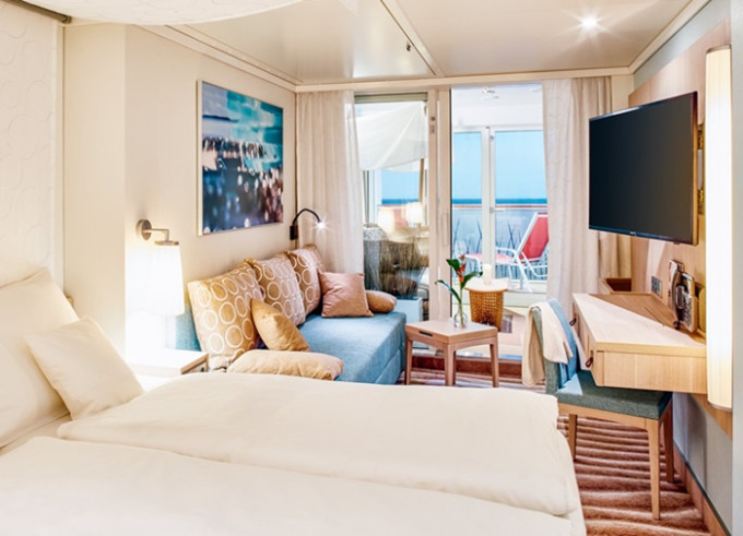 Ve všech kajutách se nachází koupelna se sprchou, 2 pevná lůžka a v některých kajutách též 2 přistýlky ve formě sklopných lůžek či rozkládacího sofa, úložné prostory, trezor, vysoušeč vlasů, telefon, TV, regulovatelná klimatizace.