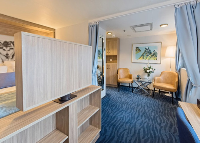 | P2D - Vnější kajuta Arctic Superior 11m². Neotevíratelné okno. varná konvice. Max 2 osoby. | 103 657 Kč 51 828 Kč za osobu | ||