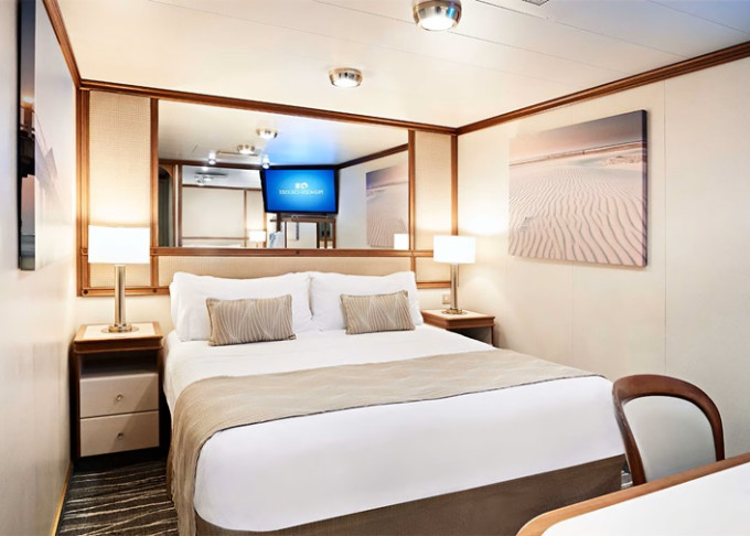 Standardní vybavení kajut: koupelna se sprchou a toaletou, 2 lůžka s možností konfigurace, úložné prostory, minibar, fén, TV.