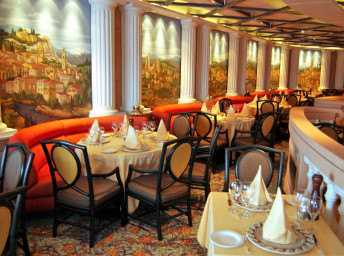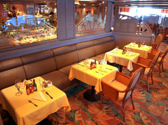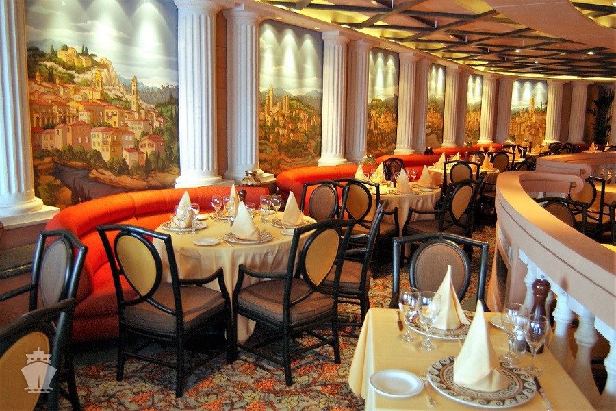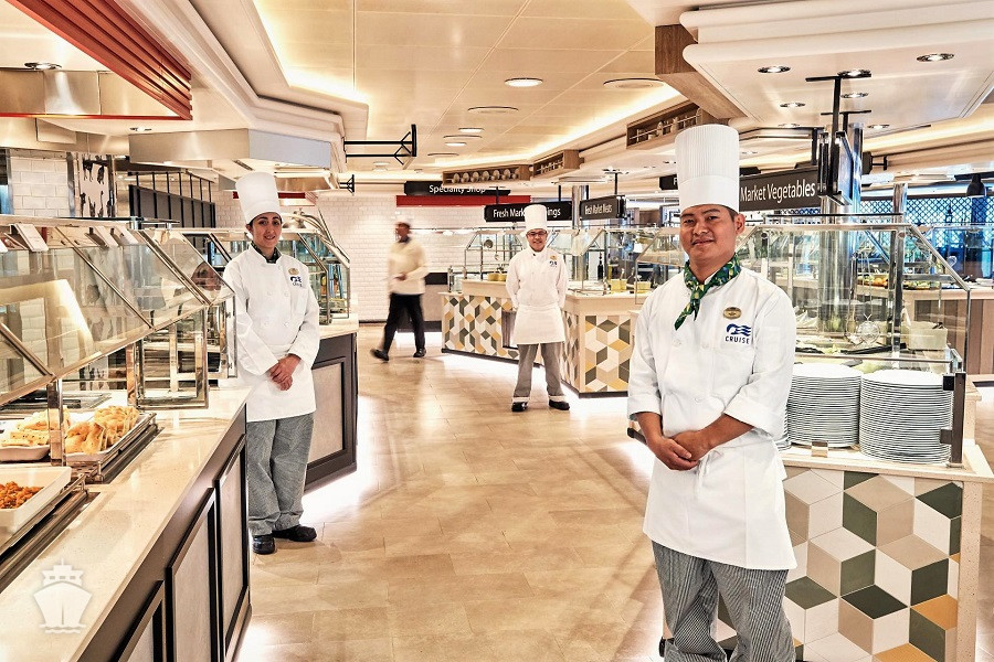 Stravování ve speciálních restauracích a zařízeních je za příplatek: například steakhouse Crown Grill, italská trattorie Sabatini’s, gourmetské restaurace The Chef’s Table nebo Chef’s Table Lumiere, italská zmrzlina Gelato aj.
