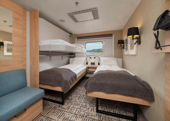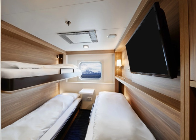 | O3 - Vnější kajuta Polar 9 m². Neotevíratelné okno. Tv. Max 3 osoby. | 74 133 Kč 37 067 Kč za osobu | ||
