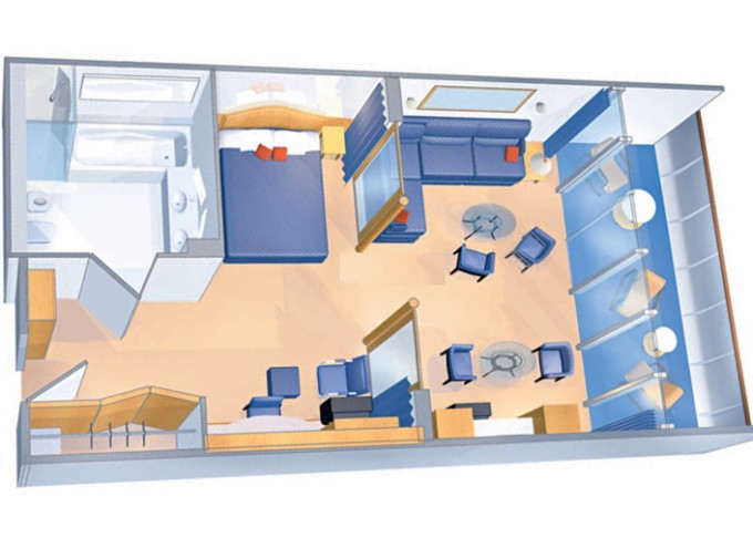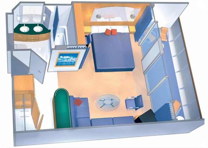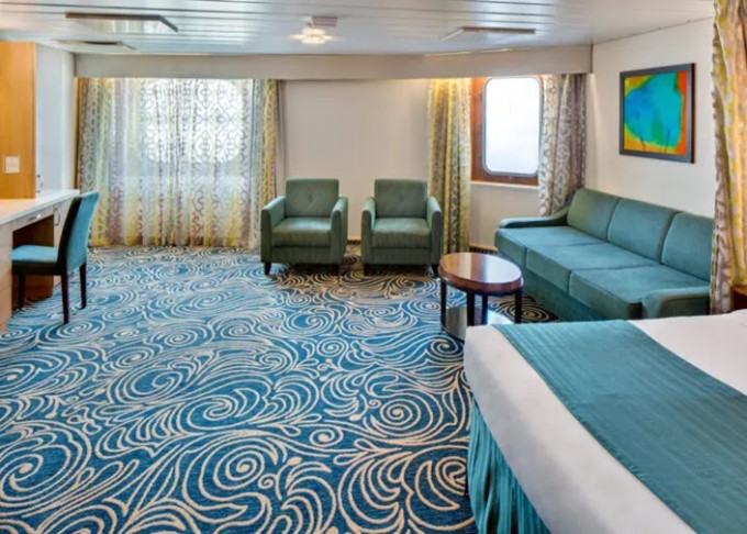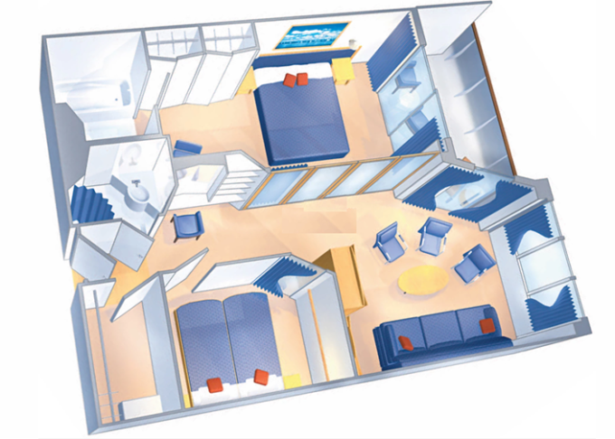 | VO - Ocean View Suite (bez balkonu) 44 m². Panoramatické neotevíratelné okna. Výhody Royal Suite Class. 8. paluba. Max 6 osob. | 158 008 Kč 158 008 Kč za osobu |