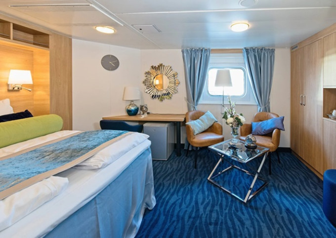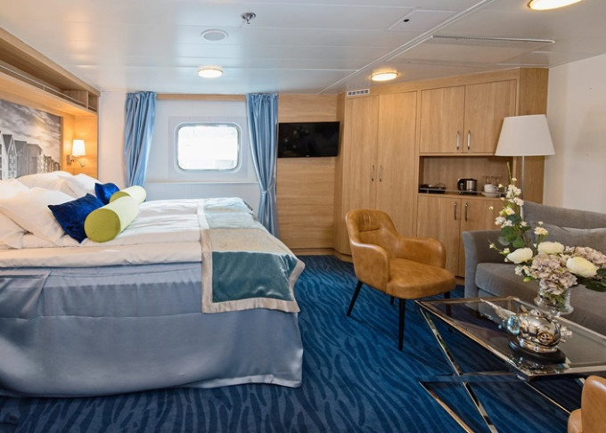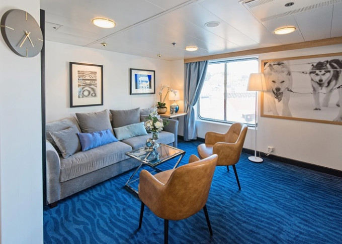 | M4 - Expedition Suite 28-30 m². Panoramatické neotevíratelné okno. Obývací část, Tv, WiFi, varná konvice. Max 4 osoby. | 438 155 Kč 219 078 Kč za osobu | ||