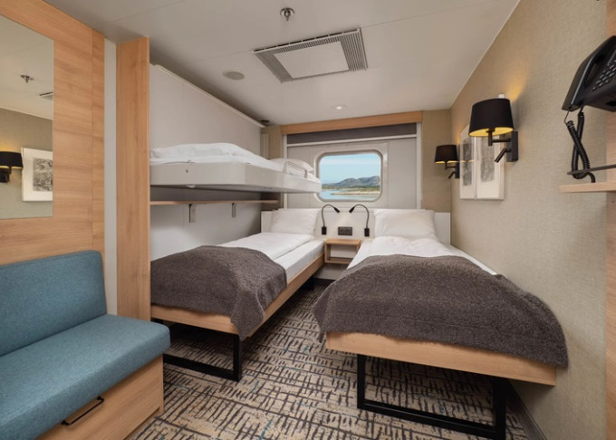| N3 - Vnější kajuta Polar 10-12 m². Neotevíratelné okno. Max 3 osoby. | 239 484 Kč 119 742 Kč za osobu | ||