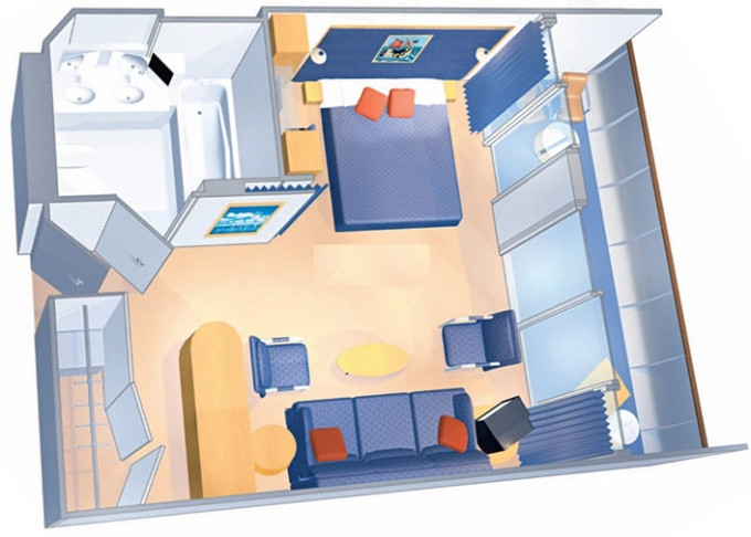 | 1K - Velká vnější kajuta Ultra Spacious 27 m². Neotevíratelné okno. 2/6. až 9. paluba. Max 6 osob. | 44 460 Kč 22 230 Kč za osobu | ||