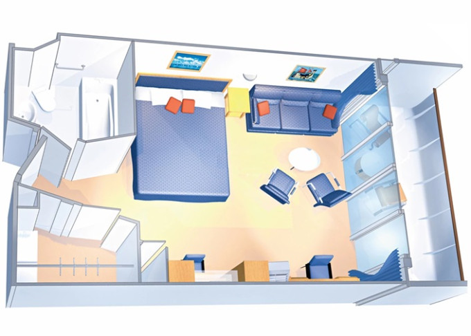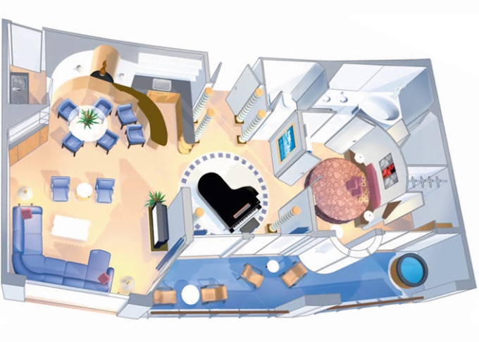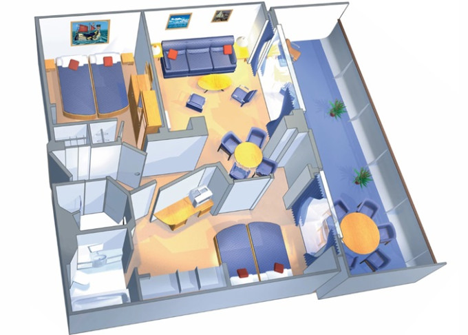 | VP - Ocean View Panoramic Suite (bez balkonu) 38 m². Panoramatické neotevíratelné okna. Výhody Royal Suite Class. 12. paluba. Max 6 osob. | 43 086 Kč 43 086 Kč za osobu |