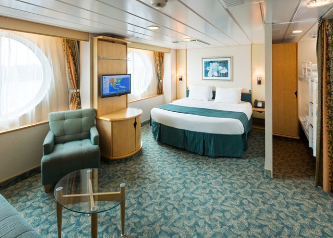 | VP - Ocean View Panoramic Suite (bez balkonu) 38 m². Panoramatické neotevíratelné okna. Výhody Royal Suite Class. 12. paluba. Max 6 osob. | 46 009 Kč 23 004 Kč za osobu |