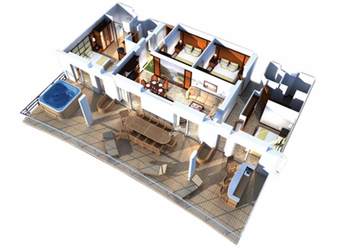 | VS - Villa Suite / 4 ložnice 112 m² / balkon s vířivkou 75 m². Výhody Royal Suite Class. 6. paluba. Max 14 osob. | 88 470 Kč 88 470 Kč za osobu |